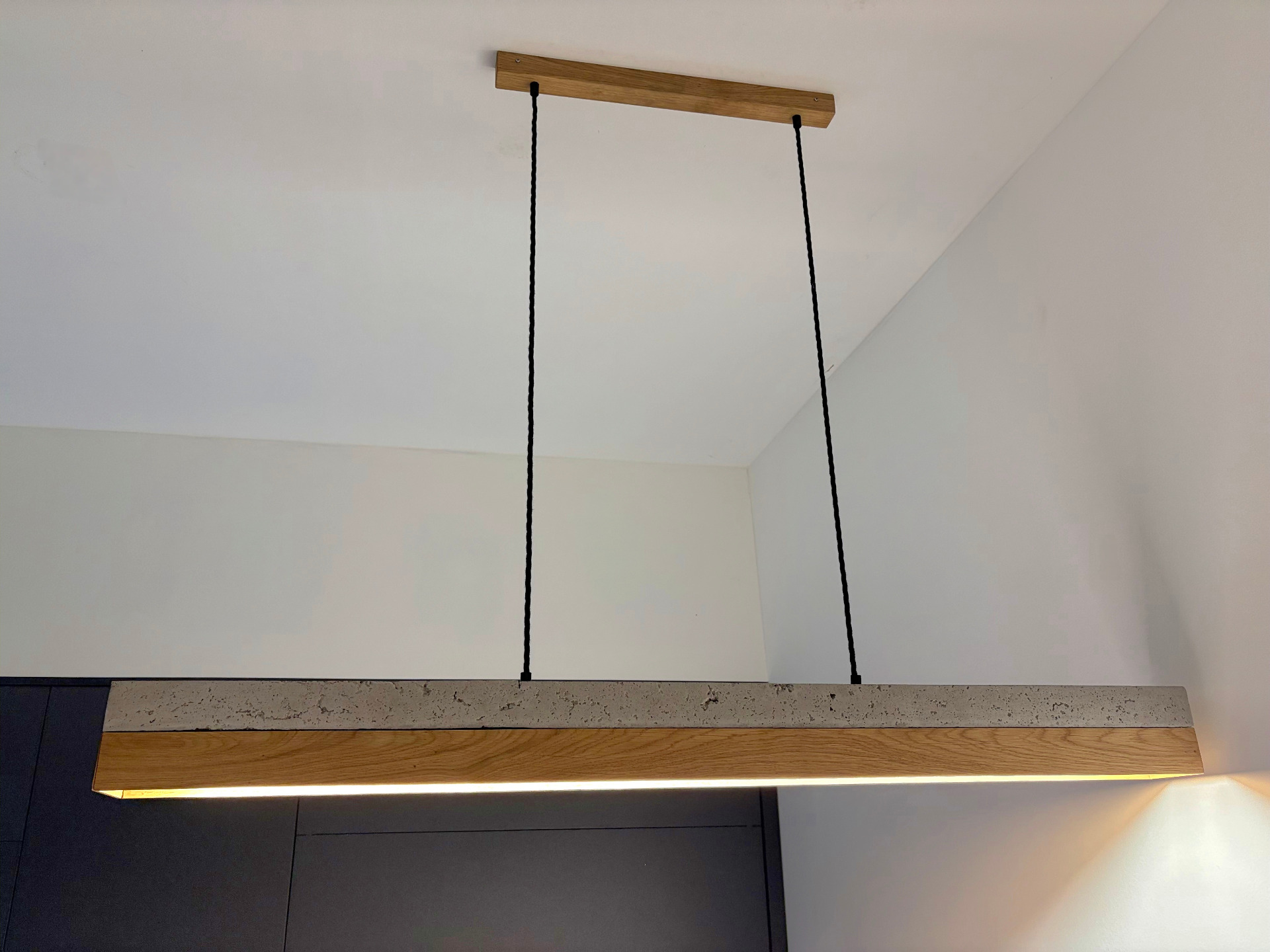 Saját készítésű, kézműves egyedi lámpák, akár egyedi méretre és igény szerinti fatípusból, a konyha vagy a lakás színeihez igazítva.
